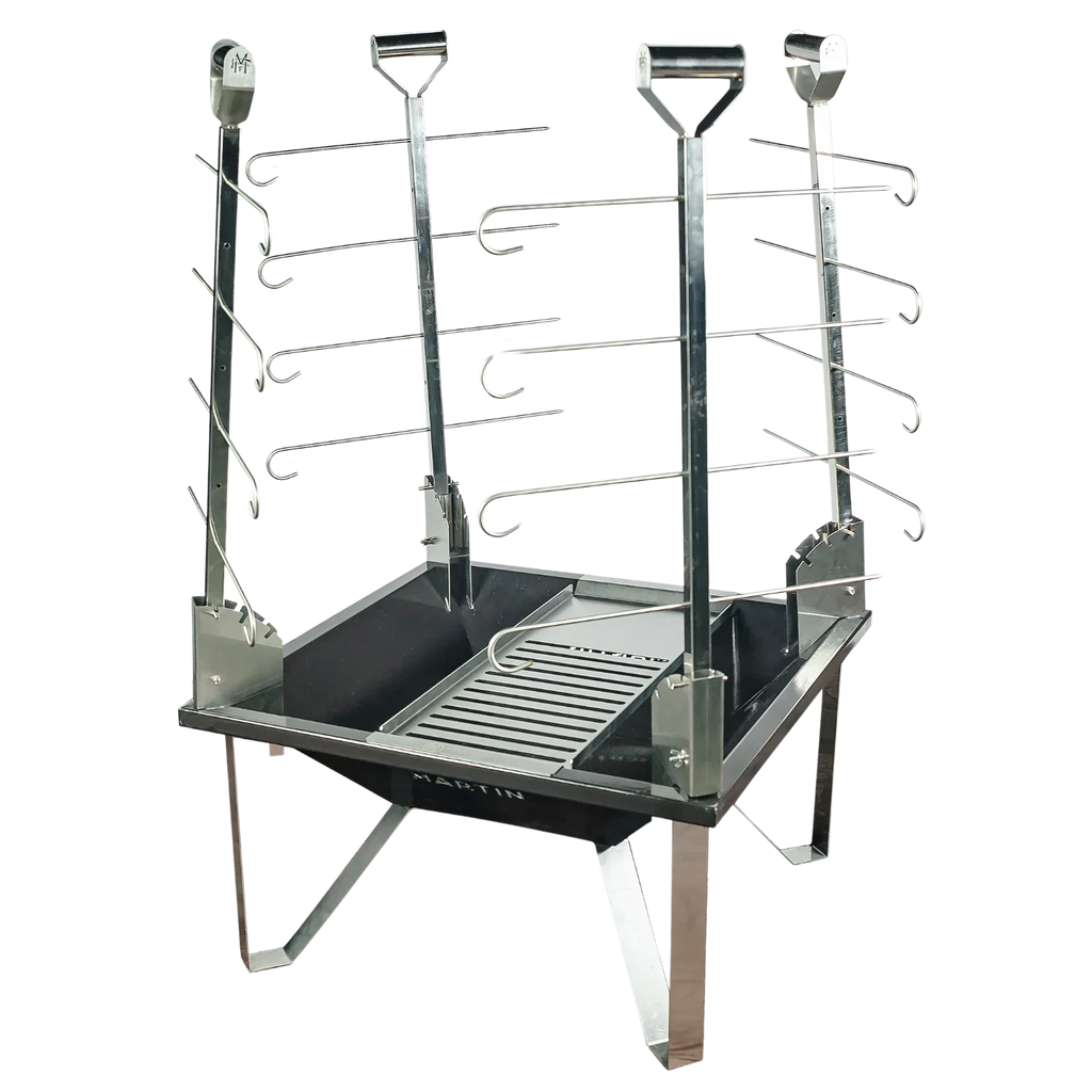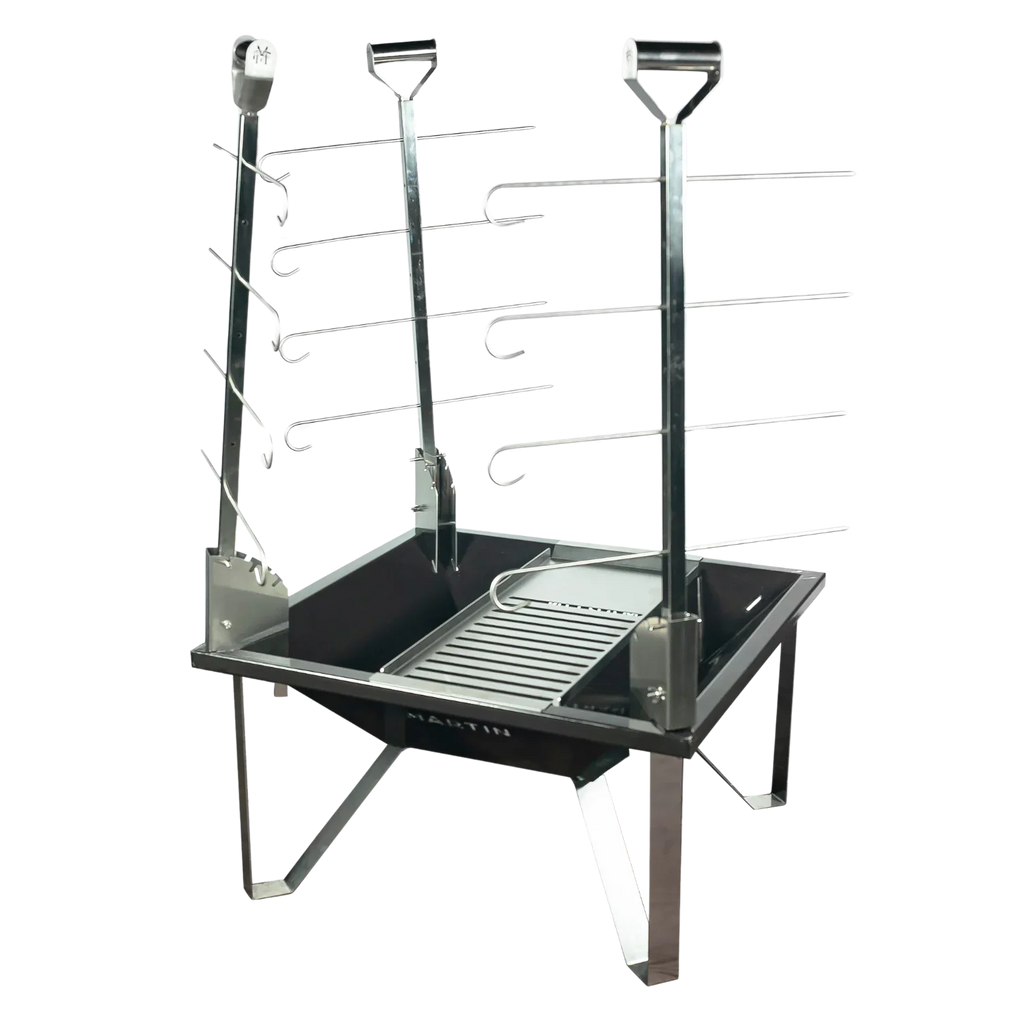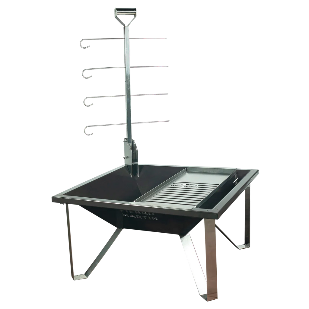 Traga a tradição do fogo de chão para seus momentos ao ar livre com a Churrasqueira Fogo de Chão. Com um design robusto e materiais de alta qualidade, ela combina funcionalidade e charme rústico, garantindo assados perfeitos e experiências inesquecíveis. Fabricada com base em aço revestido em cerâmica e pés de aço inox, oferece resistência e praticidade. Com opções de 1 a 4 estacas em aço inoxidável, proporciona versatilidade para diferentes cortes e quantidades de carne.