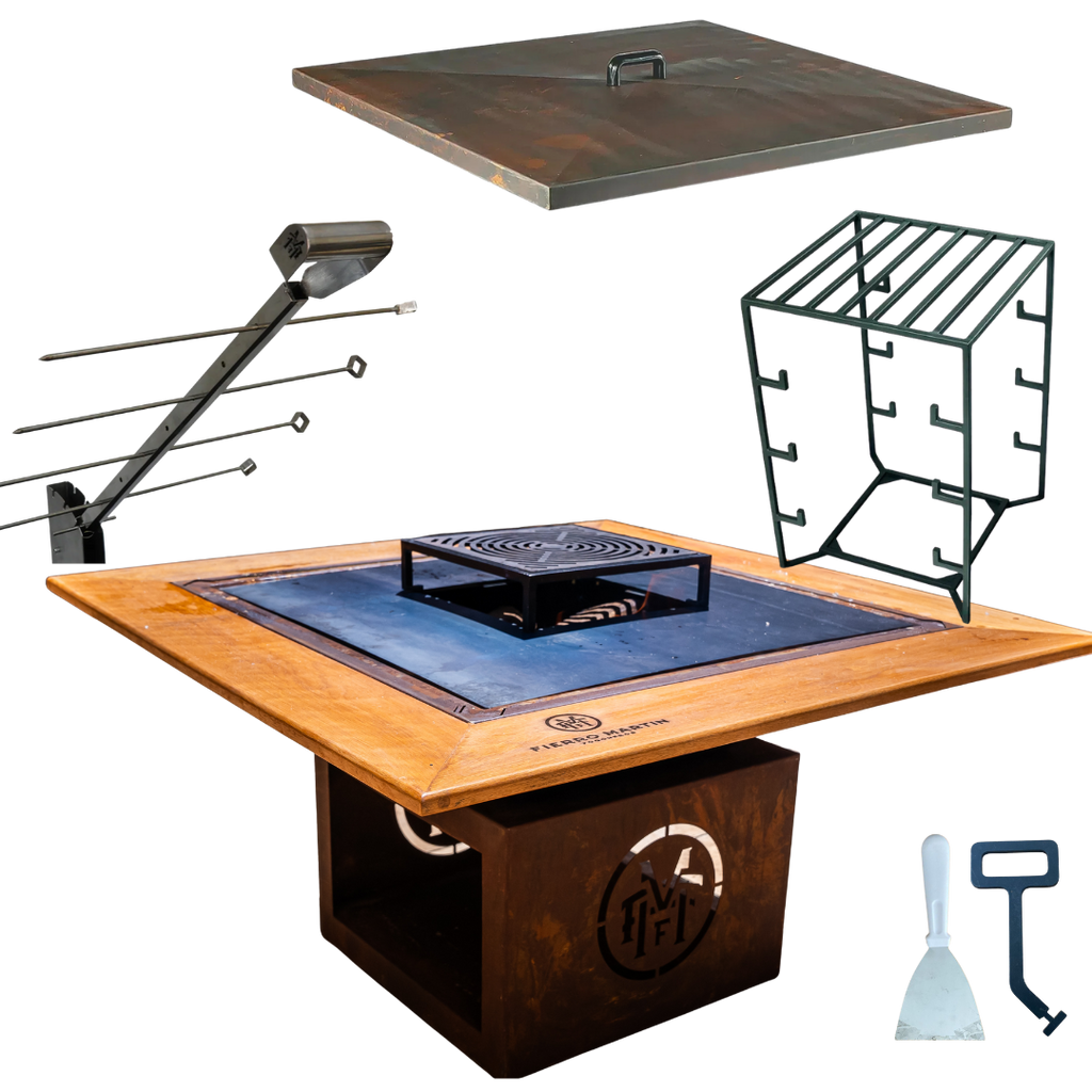 A Churrasqueira Gourmet RAN é uma peça criada para quem exige desempenho, beleza e versatilidade no espaço gourmet. Com sua estrutura imponente em aço corten, acabamento marcante e design contemporâneo, ela transforma qualquer ambiente externo em um ponto de encontro sofisticado — e agora fica ainda mais completa com três acessórios que elevam a performance do seu churrasco para outro nível.