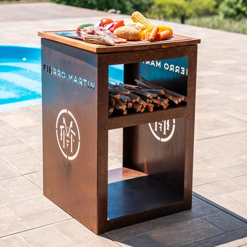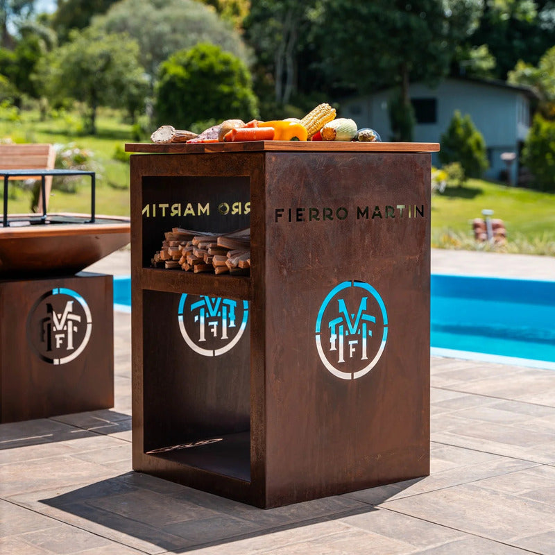 Sofisticação e Funcionalidade no Seu Espaço Gourmet O Balcão Klide, da Fierro Martin, amplia a praticidade e elegância do seu ambiente gourmet. Projetado para acompanhar a Churrasqueira Hell, também pode ser adquirido separadamente, oferecendo um espaço funcional e estiloso para utensílios e ingredientes. Feito em aço corten com revestimento em cerâmica, combina resistência, fácil limpeza e um design contemporâneo para quem valoriza praticidade com estilo. O Balcão Klide, da Fierro Martin, complementa perfeitamente seu espaço ao ar livre. Fabricado em aço corten com detalhes revestidos em cerâmica, oferece uma superfície resistente e fácil de manter, ideal para organizar seus itens durante as refeições. Vendido separadamente da Churrasqueira Hell, une sofisticação e funcionalidade em um único produto.